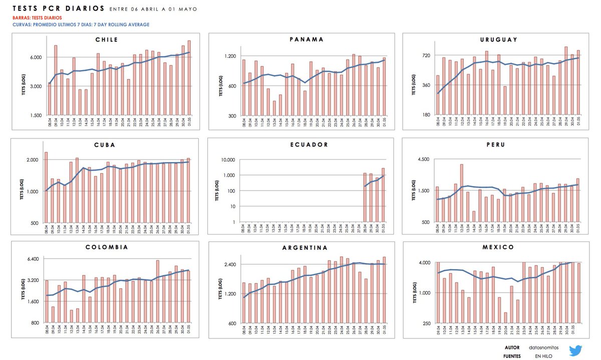 Perú es el ejemplo más claro de lo contrario. Tienen 342.000 pruebas realizadas, y se ufanan de ser el país con la mayor cantidad de muestras hechas en toda Latinoamérica. Pero también lastran que poseen más de 1.124 muertos y hoy han tenido un día letalísimo: 76 fallecidos.
