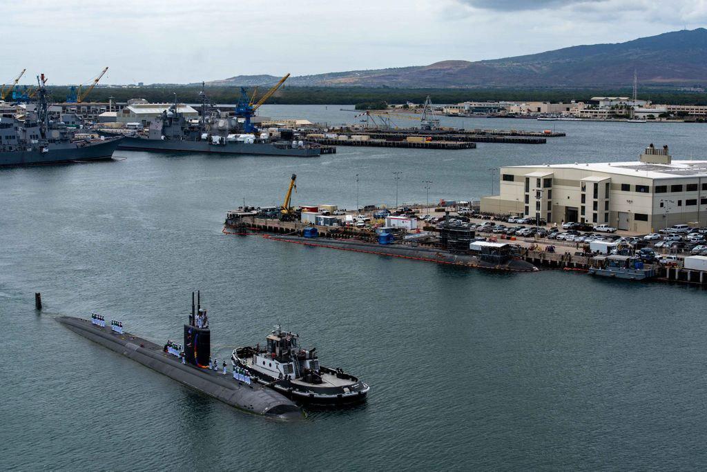 • Hola a todos. El submarino SSN-770 Tucson (clase los Ángeles) regresa a Pearl Harbor después de siete meses de patrullaje. 18 de septiembre, 2019, Hawaii, Pearl Harbor.