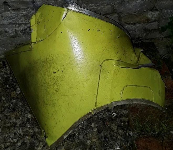 Añadió: "la pieza aterrizó en el Jardín de un nacional local y fue recuperada por el personal del ala de la segunda bomba, en colaboración con la Policía del Ministerio de Defensa del Reino Unido.