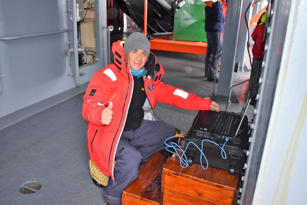 Dr. Jorge Natt Oceanografo de Inocar e INAE @AntarticoEC integra grupo de investigadores a bordo del buque "ARC 20 de Julio" en el marco del componente de Cooperación Internacional con Ecuador