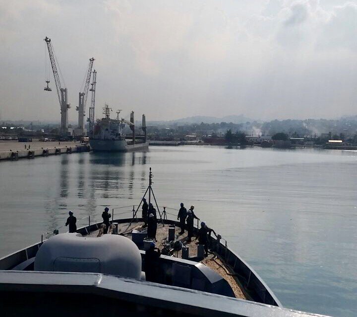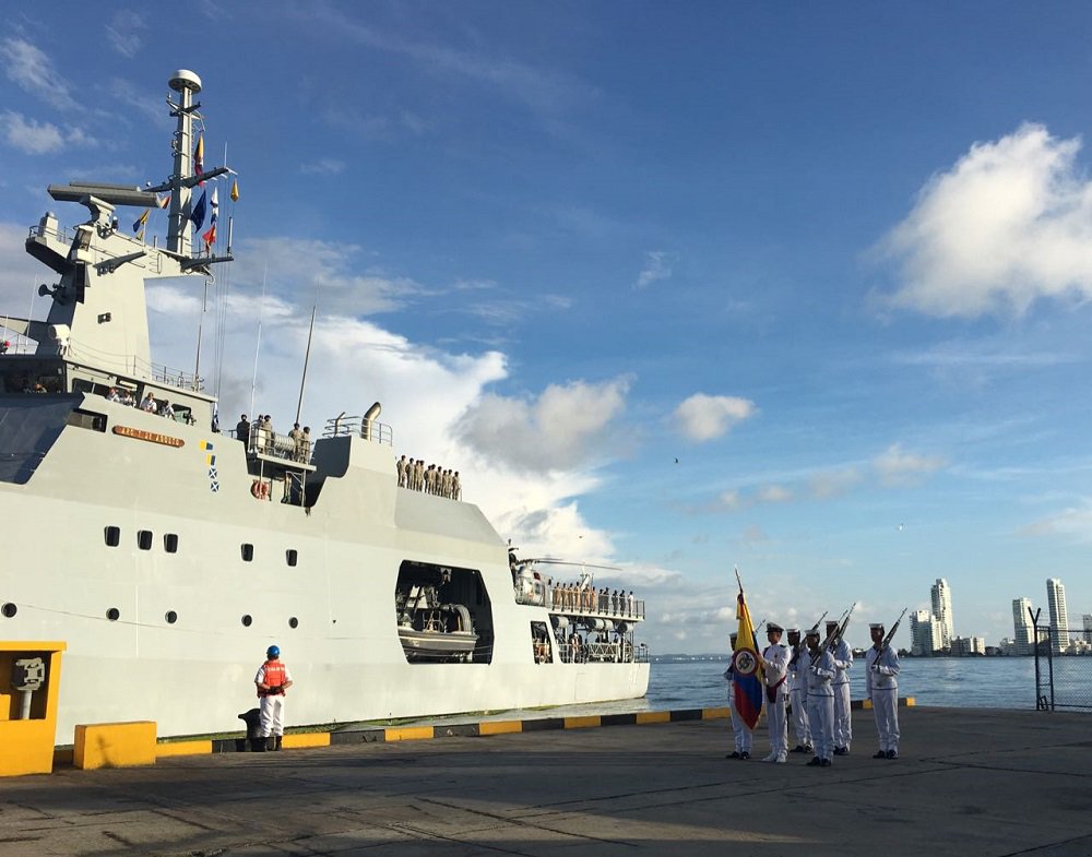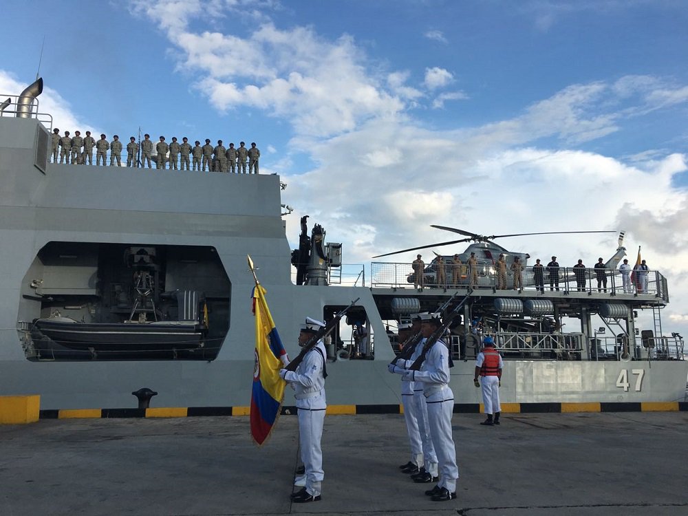 Llegada ARC "7 de Agosto" a #Cartagena después de navegar 660 millas náuticas, llevando a bordo 20 toneladas de ayuda humanitaria.