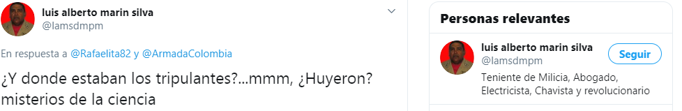 Este se convierte en el ridículo mas grande en la historia de las fuerzas militares de Colombia porque la verdad se obliga a perder las 3 lanchas para NO ir en contravía con la política del gobierno nacional y el NO reconocimiento del sátrapa de maduro tambien ya en la red hay videos y comentarios de watsap de gente en la zona que habla que fue con dolo la situación la gente con conocimiento de causa dice que los centinelas fueron pagos por servicios de seguridad del regimen chavista ( quien esta detras de esto ? cuba,rusia solo las faes ?) , lo que obliga que lo primero que hay que hacer en esta situación es dar la baja a todos los comandantes de estación , inmediatamente enviar al calabozo a los soldados y centinelas a cargo de las naves y del cuidado de la seguridad de la base ,enviar al calabozo a los soldados que dejaron las armas dentro de las lanchas este punto es el que demuestra que esto no fue un error o que se soltó el bote este es la prueba que fue a propósito para que pasara esta situación y obligar a Duque a conversar con el asesino burro y toca rapidito enviar a toba la base a la cárcel antes de que se vuelen los soldados para Venezuela