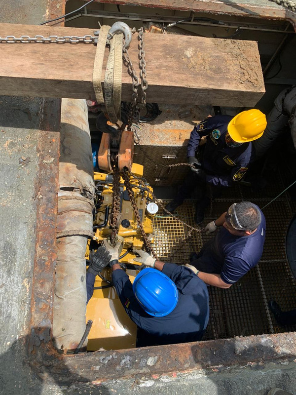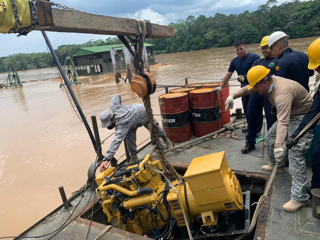 Mantenemos la capacidad operacional de nuestras Unidades en la Amazonía colombiana, realizamos la maniobra de inclusión del motor generador al ARC CTCIM “Alejandro Ledesma Ortiz”, Unidad perteneciente a la #FuerzaNavalDelSur, ubicada en Tres Esquinas, Caquetá.