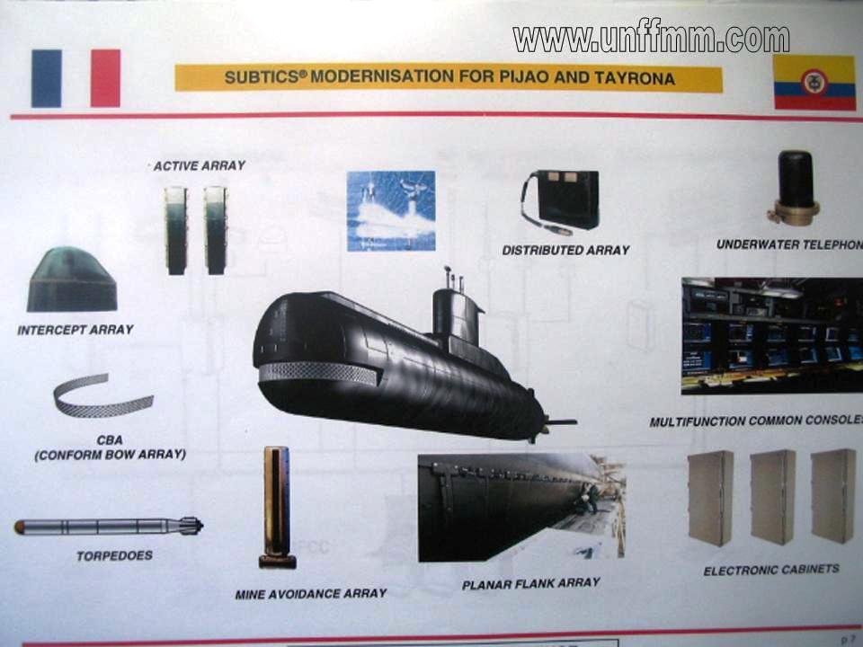 Claro, el punto es que a los 209 colombianos al modernizarlos con flank array ya eliminas la necesidad de un sonar cilíndrico y sigues normalito con el sonar de herradura de toda la vida. En el caso de los venezolanos al ser una modernización anterior, de hace más de 20 años, se utilizó el sonar cilíndrico, con las modificaciones estructurales que ello conlleva, pues los sonares de flanco no estaban tan desarrollados y/o disponibles para submarinos del tipo 209. En su momento era lo mejorcito a lo que se podía acceder...