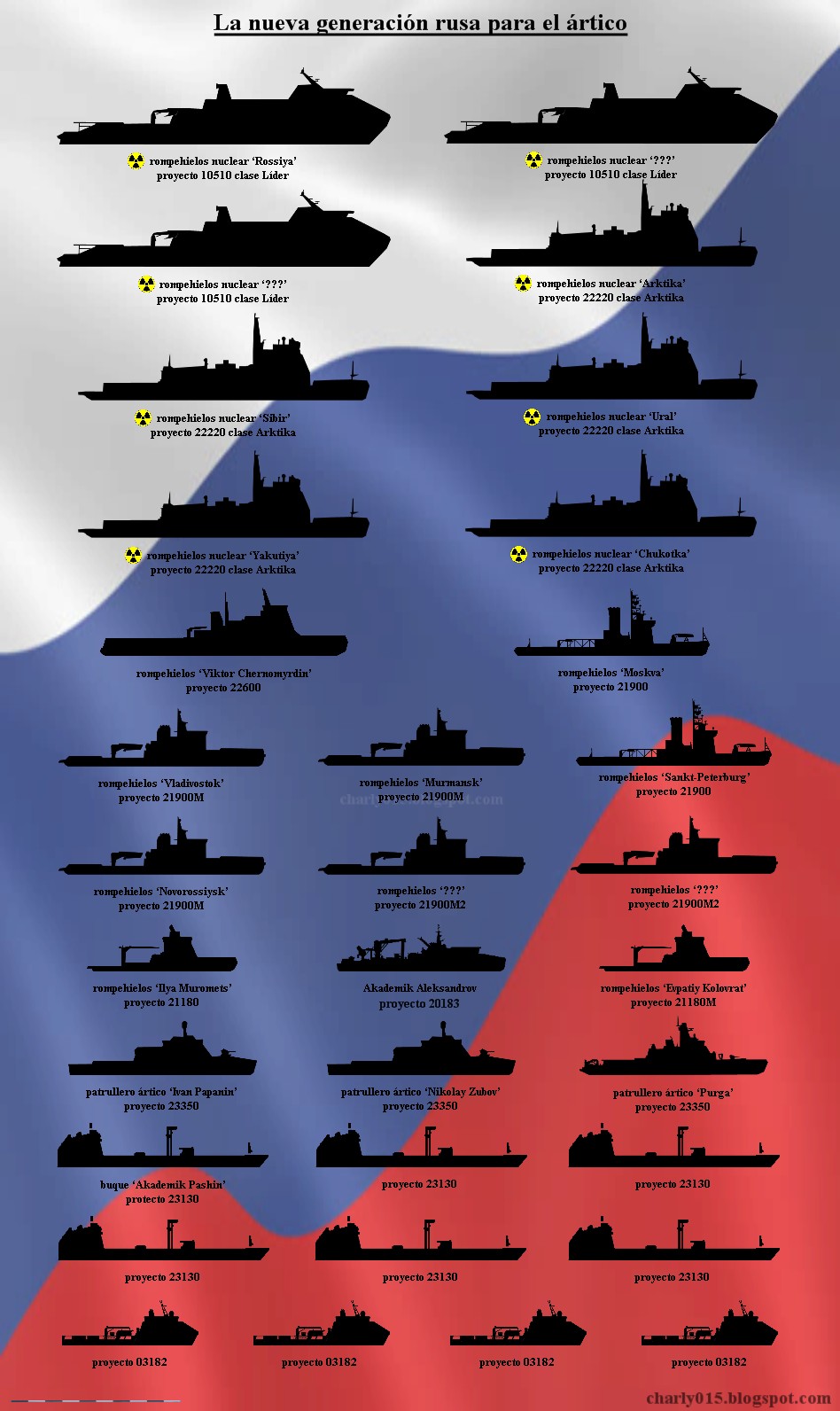 Por cierto, el grafico anterior no incluye la flota artica, dos clase lider firmados que inican este año construccion y que seran los rompehielos mas poderosos jamas construidos y dos proyecto 23550 en grada. La flota artica que le planta dientes a EEUU quedaría asi.