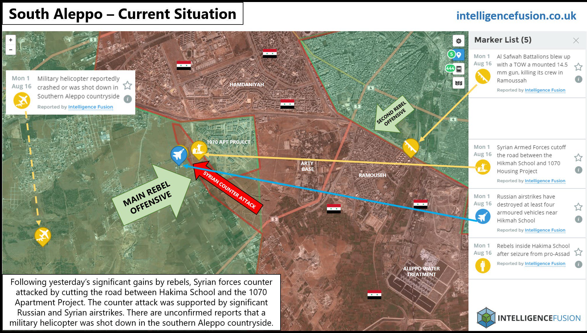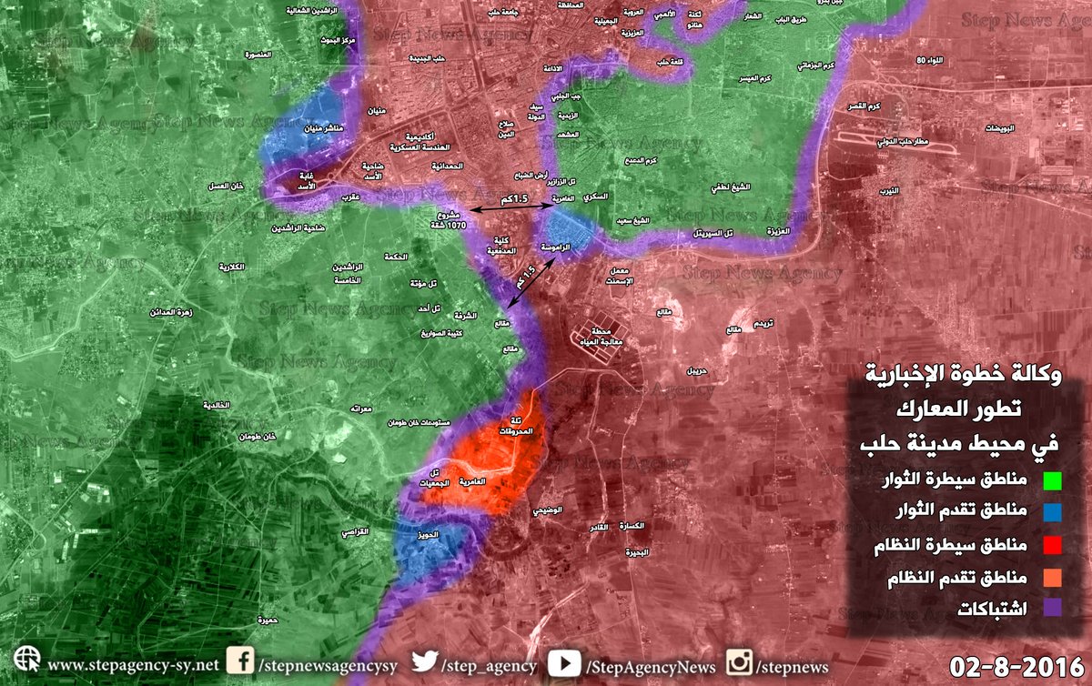 Bueno. Volviendo a actualizar, los de Al-Assad y rusos parece que han embolsado a los que iban a embolsar a los otros. Ahora los rebeldes han quedado en sánduche en Aleppo...