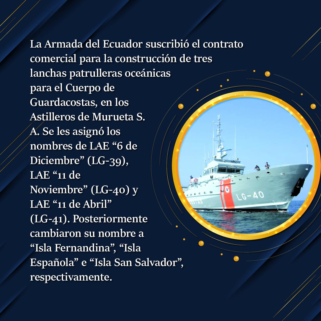 Bien, un día como hoy, se suscribió el contrato de construcción, de 3 Guardacostas oceánicos en España, los que actualmente prestan sus servicios, en nuestro Cuerpo de Guardacostas: