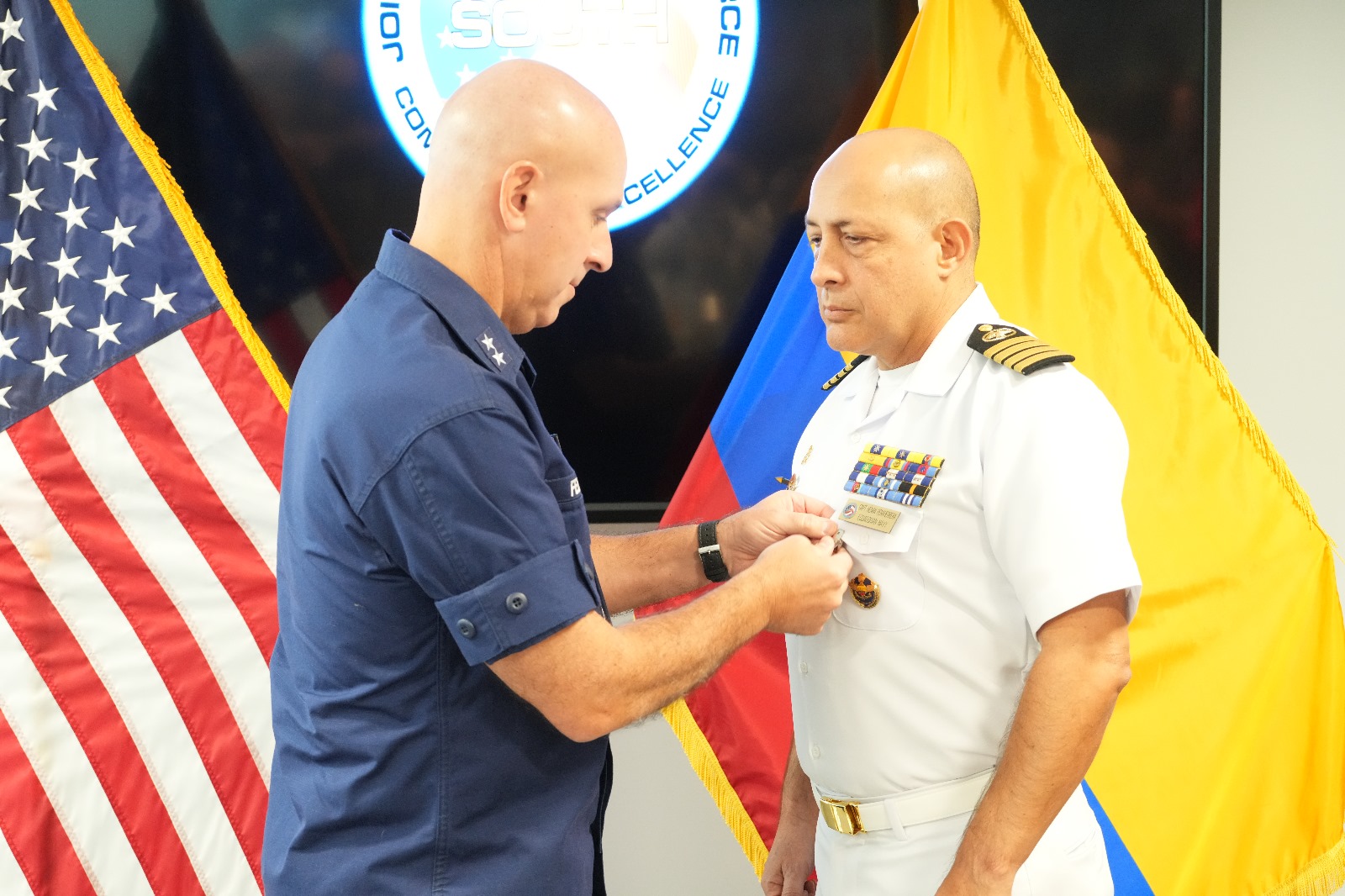 Y la Fuerza Inter Agencial del Sur ( U.S.A.), realizó la imposición de condecoración y reconocimiento, al CPNV Hernán Peñaherrera, oficial de enlace de la Armada Ecuatoriana, por su valioso aporte a las operaciones navales: