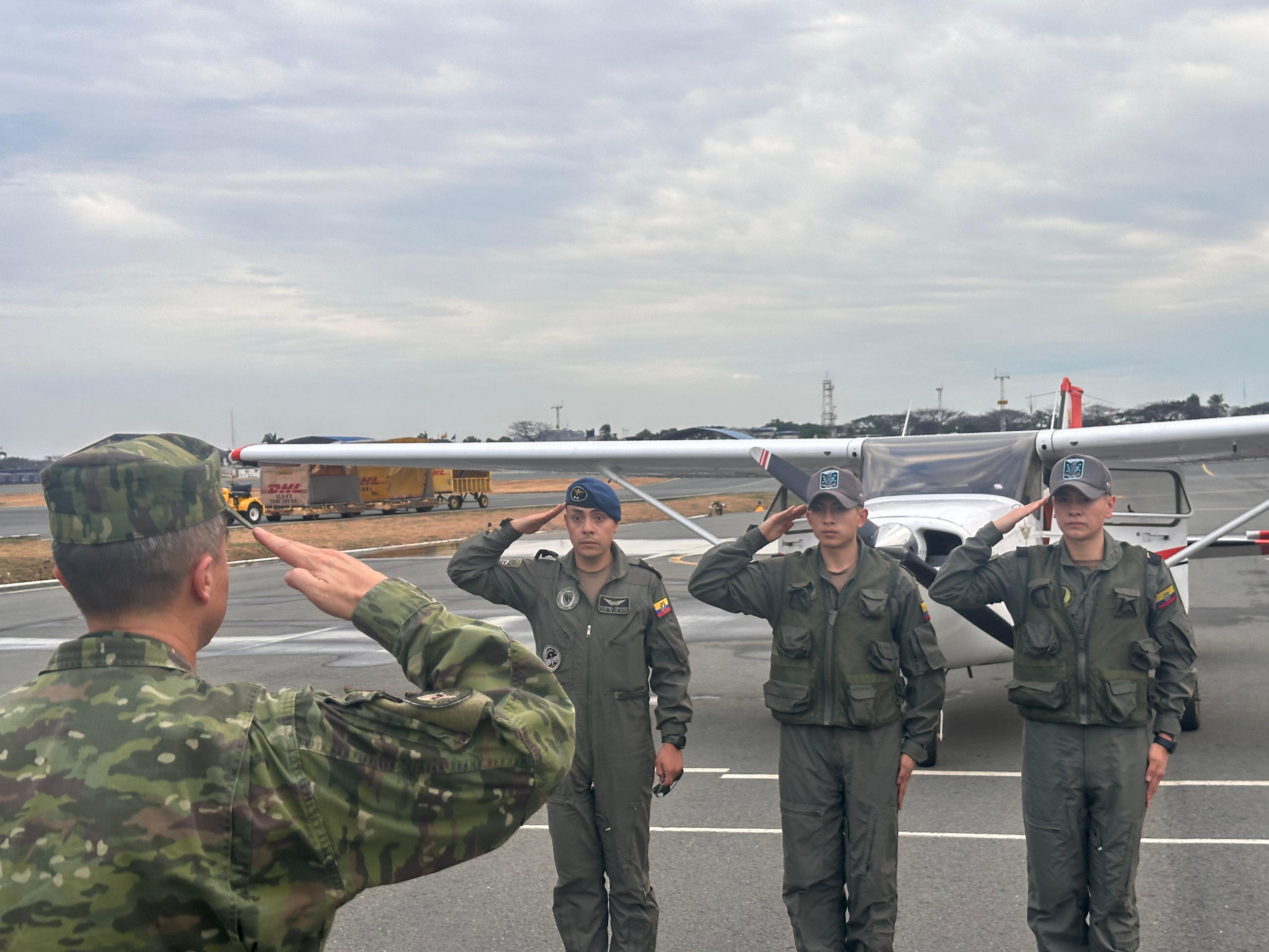 Por otro lado, otros cadetes pilotos finalizan, finalizaron la fase de vuelo de navegación instrumental, capacitación que les permite a los futuros pilotos, operar las aeronaves sin tener contacto visual del terreno, incrementando los estándares de seguridad aérea y que permitirá reforzar la capacidad, operativa de la Brigada de Aviación del Ejército # 15 Paquisha: