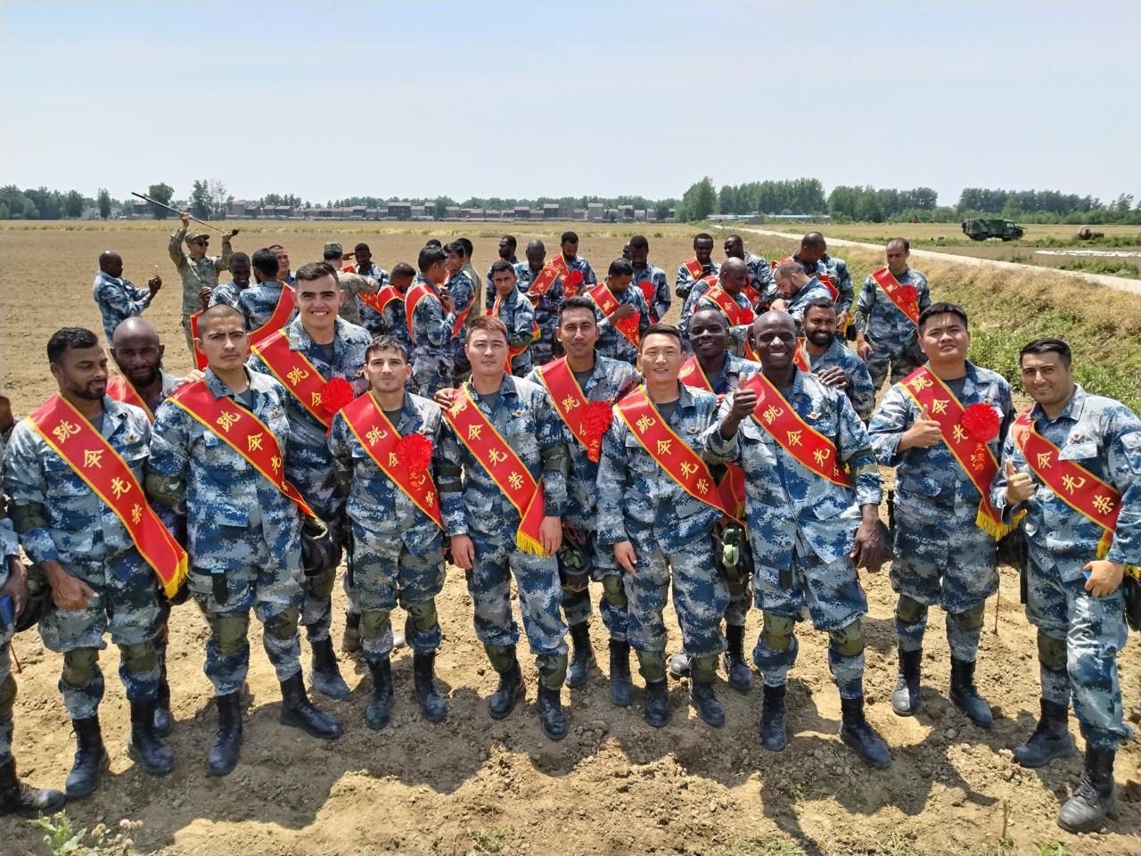 Quedando listos para infiltración aerotransportada en altas y bajas alturas, lanzamiento de cargas pesadas, empaquetamiento, túnel de viento e instrucción de precursor, curso que realizaron en el Centro de Entrenamiento de Paracaidistas, del Ejército de la República Popular China.