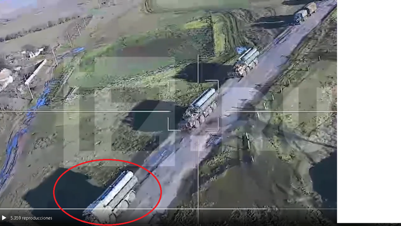 Aqui estuvieron cerca.. El primer Lancet, falla por completo al intentar darle al radar Flap Lid 5N63, "Radar de seguimiento y guía de misiles" lo que hubiera dejado la batería capada, pero aun con vida. El segundo Lancet intenta golpear un lanzador esclavo 5P85DU. Seguro lo confundió con el TEL 5P85SU, es el vehículo "Maestro" de la batería de misiles, en la imagen se distingue que va delante, este controla dos sistemas lanzadores 5P85DU "los dos que se ven detrás" por lo que de por si lo hace un blanco mas apetecible, de manera que de haber dañado solo al lanzador, deja aun muy activa la batería.