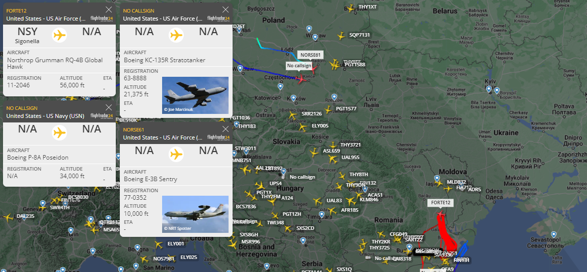 La OTAN pendiente a todo desde los cielos de Romania y Polonia.