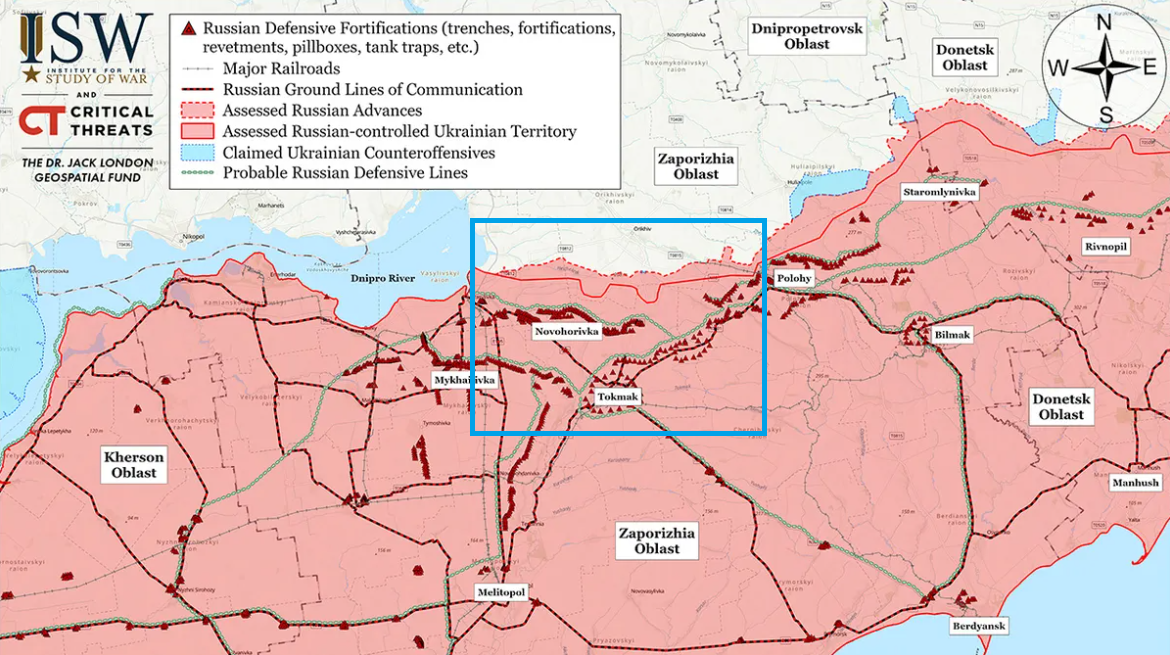 Recuerden que esta zona es de las más (si no la más) fortificadas por los rusos dentro de Ucrania. Así que hay que tener en cuenta eso y que es Ucrania la que está atacando ahora y debe asumir más bajas y perdidas.
