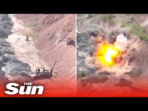 Convoy ruso con tanques y blindados fue destruido cerca de Krasnogorivka.