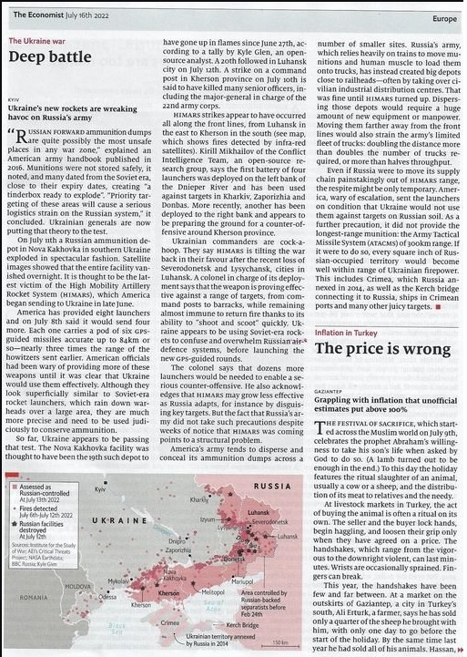 ¿Es esto "Transformacional (tm)"? Depende de lo que quieras decir. Los rusos ciertamente se adaptarán. Pueden reaccionar de varias maneras: 1) moviendo sus depósitos de munición más atrás, 2) dedicando más sistemas SAM de defensa puntual capaces de derribar misiles HIMARS para proteger sus depósitos de munición (aunque su historial ha sido irregular en este sentido), o 3) ubicar deliberadamente depósitos de municiones junto con, digamos, prisioneros de guerra ucranianos, o campos de detenidos civiles o, diablos, por qué no guarderías de niños (todo lo cual sería una violación del derecho internacional, como si Putin se preocupara por eso, ¿verdad?) Pero todas esas reacciones tienen un costo, obviamente. Las opciones n.° 1 y n.° 2 son las más probables de implementarse, pero como mencioné en otra publicación (y el artículo de The Economist reitera) por cada kilómetro que mueve ese depósito hacia atrás, está agregando dos kilómetros de ida y vuelta a su flota limitada de camiones. Cualquier cosa que obligue a los rusos a adoptar una postura logística aún más desfavorable no puede evitar ser algo bueno a largo plazo para Ucrania.