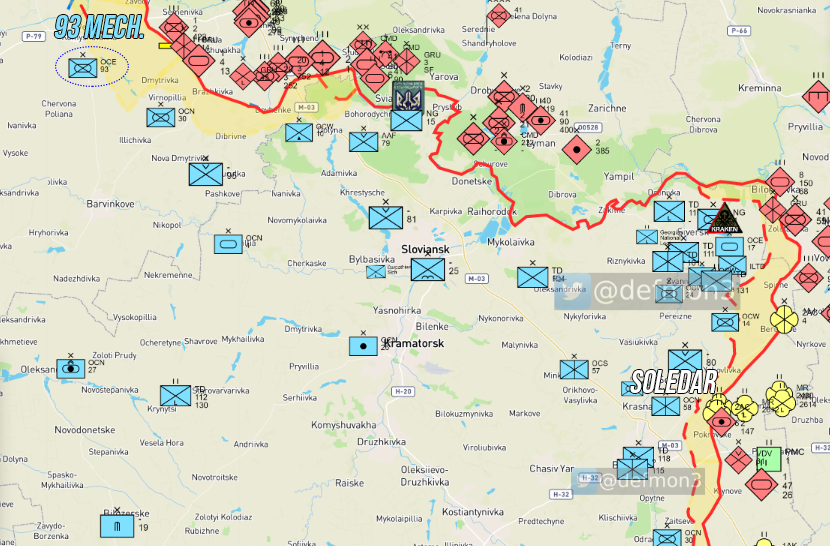 Como ve en el ORBAT, la 93 Mecanizada está al sureste de Izium, en el oblast de Jarkov, mientras que  Soledar está a 80km de su posición, en Donets.