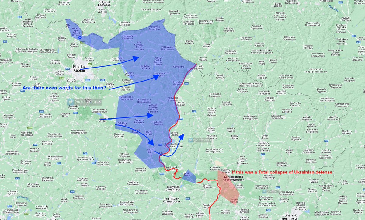 Tácticamente es gravísimo para los rusos, especialmente para los que quedan en el Donbass, ya que el grueso de su logística, munición, pertrechos y combustibles, llegaban por la ruta Belgorod - Kupiansk - Izyum - Lyman. Los ucranianos han dado un poderoso golpe de mano a las aspiraciones rusas de mantener el Este de Ucrania y el Donbass bajo su control. Algunos dirán que pueden seguir siendo aprovisionados desde Rostov, y es cierto, pero el problema es que parece que la infraestructura no es buena en dicha zona, además que es más lejos, especialmente si debe aprovisionar tropas en Kherson...