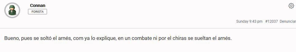 Bueno, pues se soltó el arnés, com ya lo explique, en un combate ni por el chiras se sueltan el arnés.