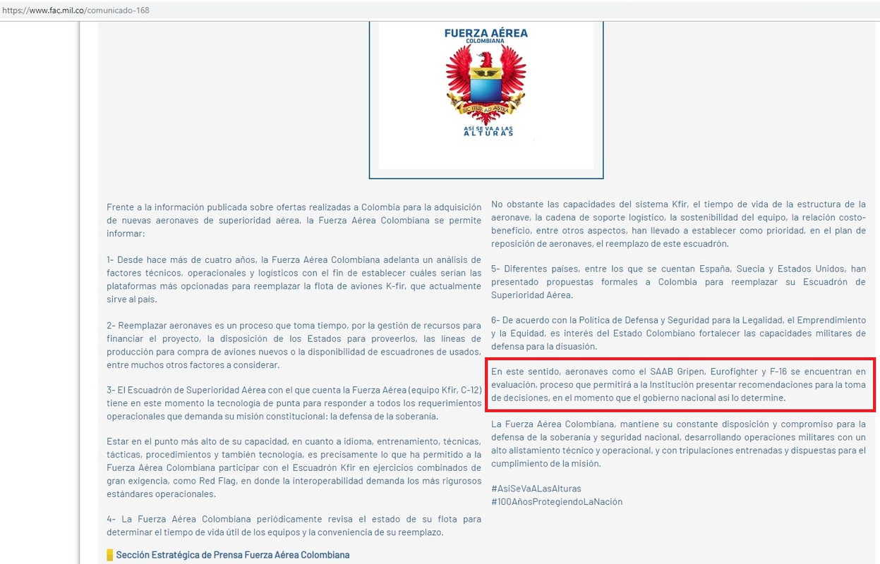 No , el negocio está abierto y por lo se y se reitera en el foro es que la FAC quiere el EF , perrooo el tema es que los gringos quieren vender el F16 . Creo que el pulso lo ganan los gringos . Esperar