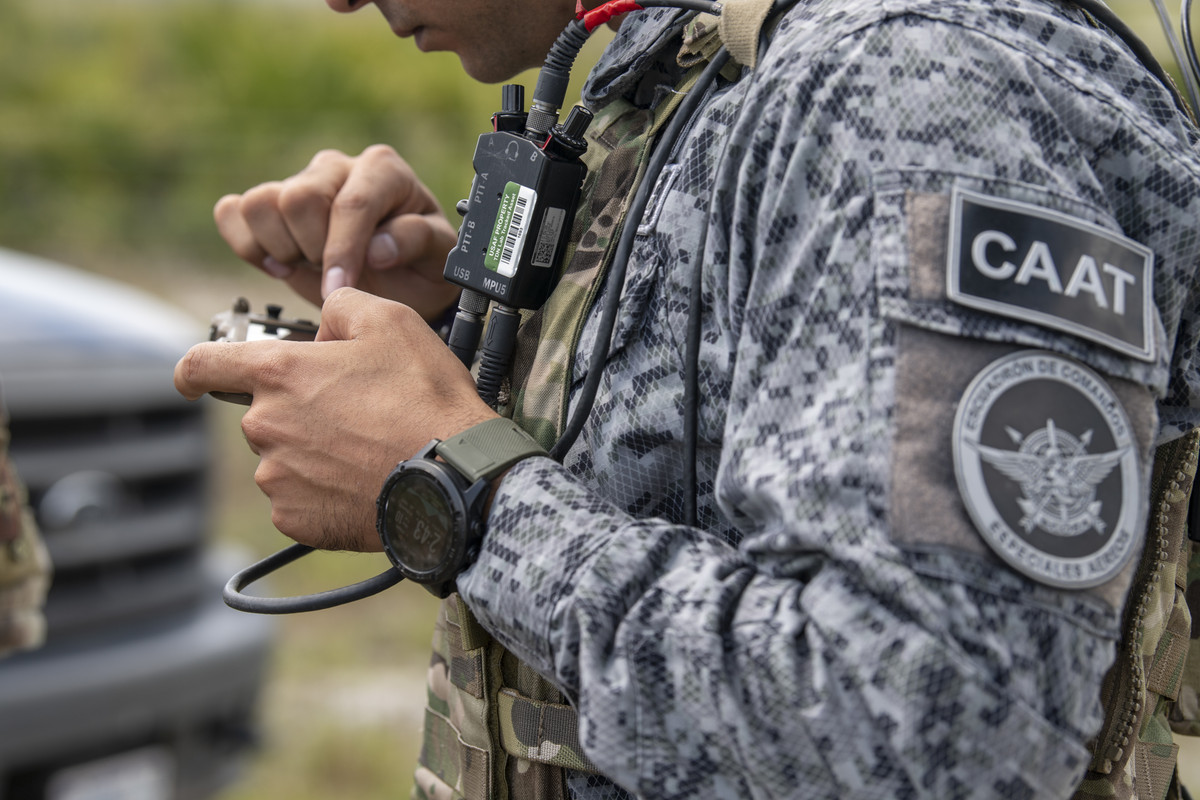 En las anteriores imágenes vimos un piloto de Supertucano volando un AT-6E. Ahora vemos un miembro del Escuadrón de Comandos Aereos (ECOEA), anteriormente llamado ACOEA y luego GROEA, en la especialidad de CAAT (Controlador Aereo de Ataque Terminal), especialidad creada con ayuda de la USAF con la que se busca crear una figura similar a los JTAC (Joint Terminal Attack Controller).