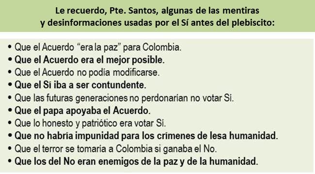 Por otro lado, no justifico en ningún momento las mentiras de nadie, con leer los acuerdos cada ciudadano pudo hacerse una idea y yo creo que eso en últimas fue lo que determinó el resultado.