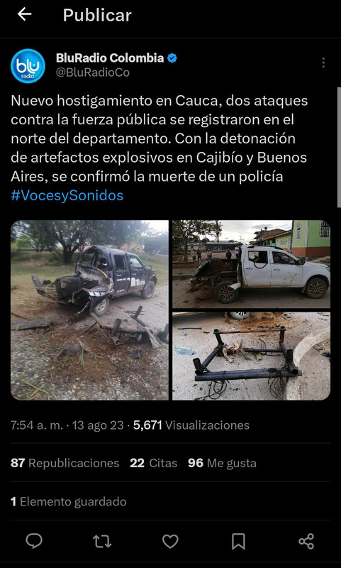 Definitivamente somos un país sin memoria, cuantas masacras, ataques a estaciones de Policía, al EJC, a la población civil que ocurrieron en en Cauca en los anteriores gobiernos, no hemos reseñado acá? Solo para nombrar algunos hechos recientes, se les olvidó los carros bombas del 2021 en Corinto, del 2022 en Argelia, la moto bomba del 2022 en Corinto, otra vez, que dejaron un montón de muertos y heridos? Eso no es de ahora, eso ha sido siempre, las FFMM y la policía se han estado defendiendo en el Cauca por décadas y quienes adelantan las acciones ofensivas han sido los terroristas, buscan culpables ? Los culpables están en los cuarteles quienes no han podido idear una estrategia de guerra exitosa en el Cauca para liberar ese dpto de los terroristas.