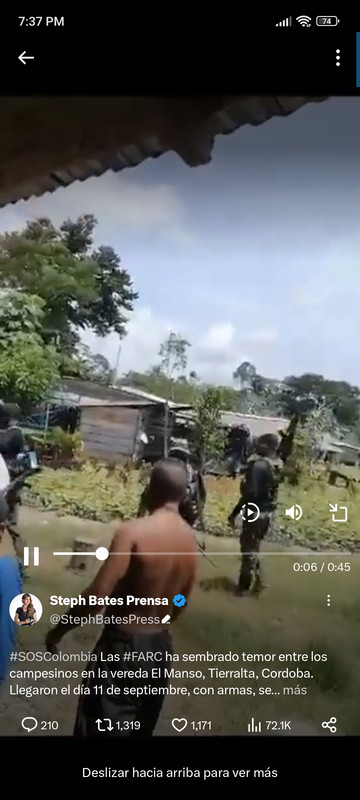 #SOSColombia Las #FARC ha sembrado temor entre los campesinos en la vereda El Manso, Tierralta, Cordoba. Llegaron el día 11 de septiembre, con armas, se identificaron como miembros de las FARC y amenazaron a la comunidad donde habían niños presentes e inclusive una madre con su hijo en brazos. La ausencia de una respuesta oficial de las autoridades ha aumentado la preocupación, dejando a los residentes preocupados por su seguridad y la de sus familias. Se necesita apoyo en ese lugar del país, presencia de fuerza pública y que no dejen solos a estas familias.