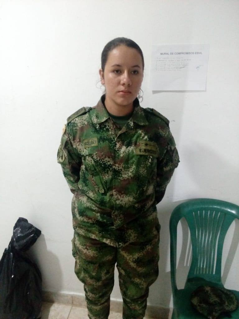 Según elEjército, fue capturada de alias ‘Alejandra’, una exguerrillera de las Farc y que usando prendas de las fuerzas militares pretendía hacerse pasar como militar para sustraer información clave de las operaciones.