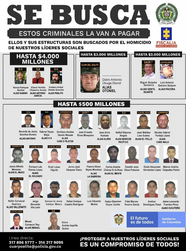 Qué bueno queel gobierno reconozca que hay líderes de verdad que vienen siendo asesinados por denunciar casos de corrupción o simplemente por reclamar las tierras que les quitaron con un revolver en la cabeza. Vamos bien!