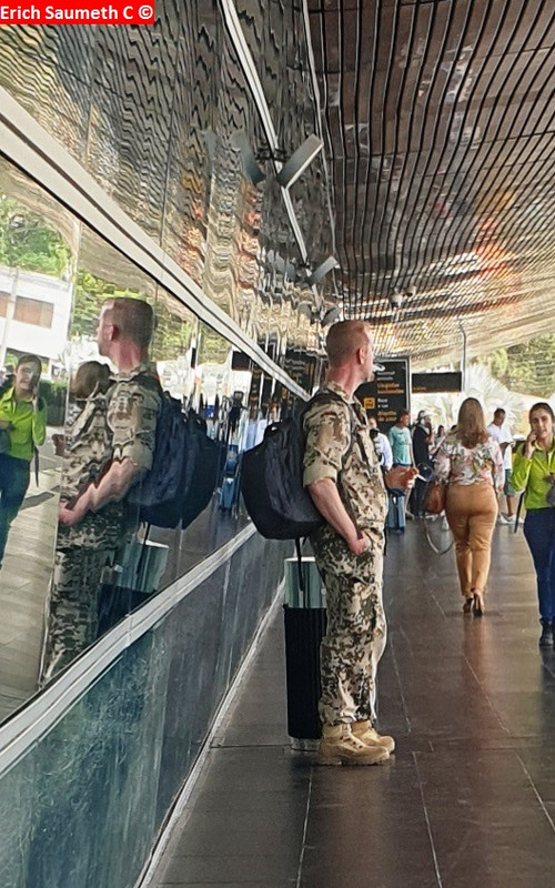 De acuerdo a información suministrada BACIM 9 y coordinación por personal de la escuadra de contrainteligencia militar BAJES se logra localizar un sujeto de sexo masculino que se encuentra dentro de las instalaciones del cantón militar Oriente portando 01 uniforme N 3A con sus insignias de la logística del ejército y de grado capitán procedo de inmediato a dirigirme asi donde se encontraba este sujeto el cual había sido mencionado en la información y efectivamente se identifica como CT. JORGE IGNACIO TAPIERO GUZMÁN CC 71683488 de Medellín Antioquia, de la misma forma le solicito de forma respetuosa y formal que me presento su cédula militar y este manifiesta que no la tiene consigo procedo de la misma forma a verificar con la señora secretaria, encargado del sistema de administración de talento humano el cual es donde reposa la base de datos del.personal activo y retirado del ejercicio y está me manifiestan que deacuerdo a la verificación y su número de cédula no registra en la base de datos del ejército en ese momento y de inmediato tomo contacto con la estación de policía del barrio buenos aires para el apoyo del cuadrante para verificar los antecedentes y verificar si me encontraba en un casa de suplantación ya que porta consigo uniformes e insignias de uso exclusivo de las fuerzas militares al llegar la patrulla verifica la información y es conducido hacia las instalaciones de la unidad de reacción inmediata para realizar el respectivo proceso de JUDICIALIZACIÓN.