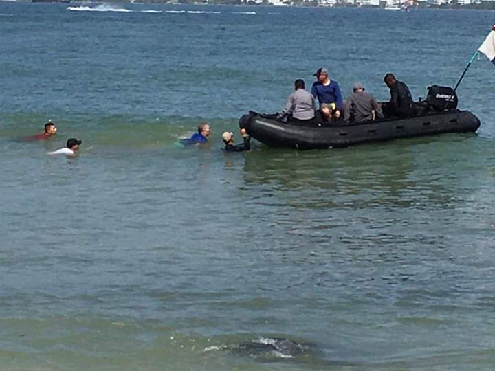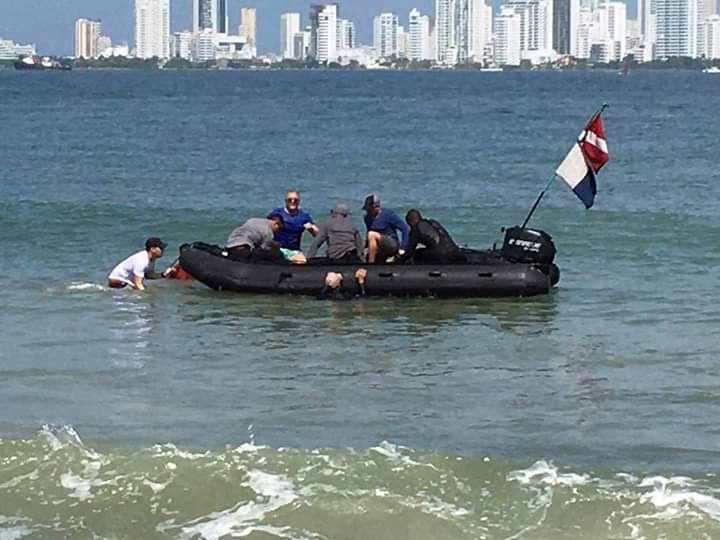 De esos rarisimos despligues que pocas veces se ven. Presidente Duque descansando en Playa de Punta Arena en la Isla de Tierra Bomba. La bandera azul con blanco=mantengase alejado