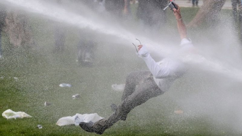 Y ayer, hubieron protestas en todos los países del mundo. Esta imagen es de Bruselas - Bélgica. Cañón de agua directo a la carita...