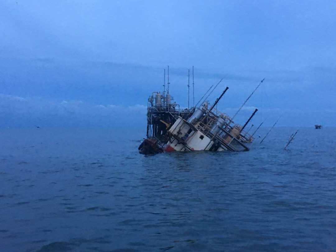 La Estación Flotante EF GP 17 hundiéndose en el Lago de Maracaibo. | Foto: Twitter @LDanieri