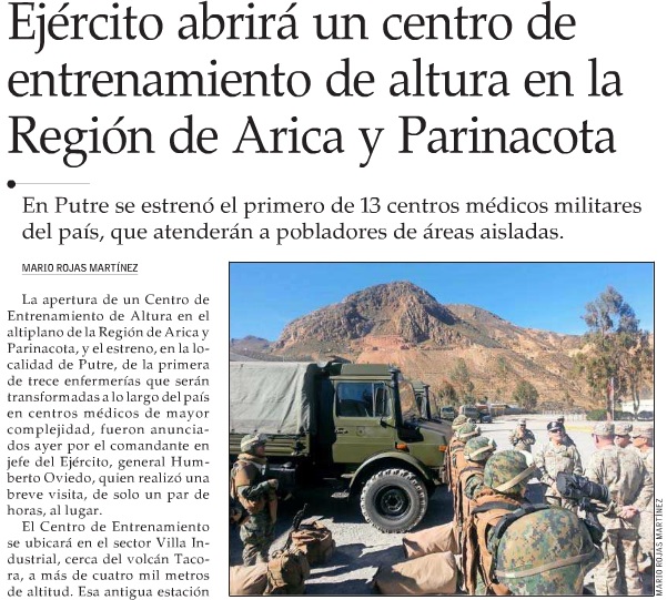 La actividad se realizó el día 6 de junio en la localidad de Pampa Chaca, ubicada al sur de la ciudad de Arica, durante el ejercicio Qhunaña y consistió en una práctica de tiro efectuada por una batería de obuses remolcados M-101/33 de 105 mm perteneciente al Grupo de Artillería N°14 'Parinacota' de la Brigada Motorizada N°24 'Huamachuco' y carros portamortero M-106 A2 de 120 mm del Batallón de Infantería Blindada N°27 'Bulnes' de la Iª Brigada Acorazada 'Coraceros'.