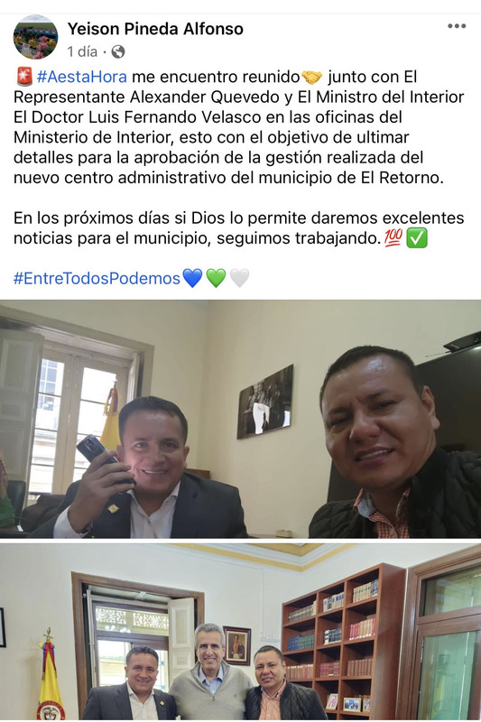 Coincidencialmente, el mismo día que el representante @Alexanderq06 del @soyconservador se reunió con @MinInterior para hacer “gestiones” con el alcalde de El Retorno, que es de su mismo grupo político, firmó la ponencia de la Reforma Laboral, en contravía de su partido.