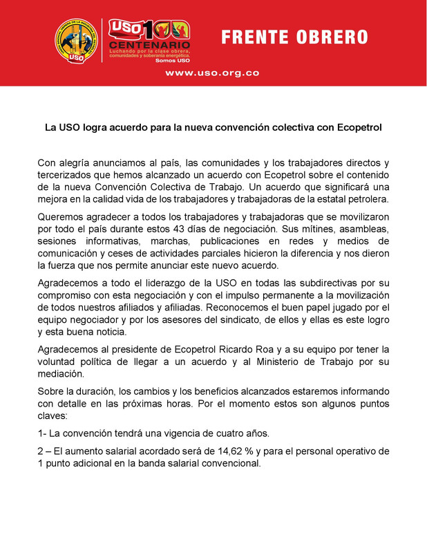 Bueno el sindicato de Ecopetrol hace el siguiente y orgulloso comunicado de lo que acordaron con el gobierno en su convención colectiva estos son los beneficios.