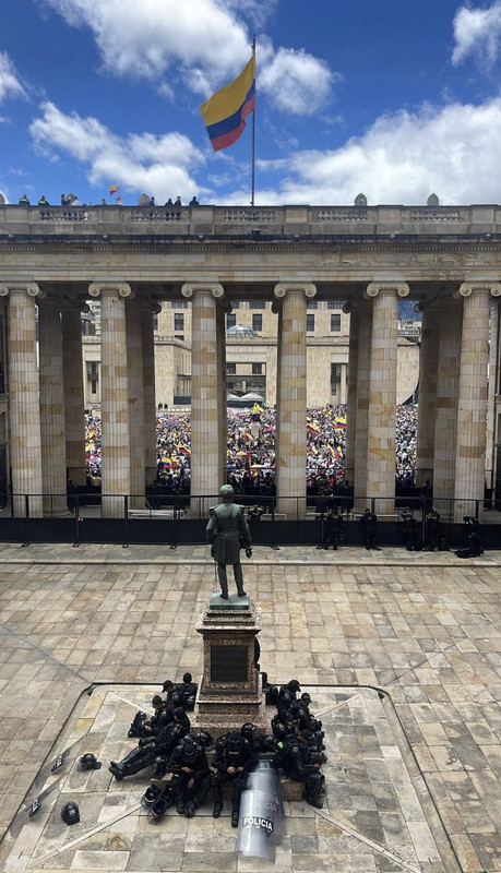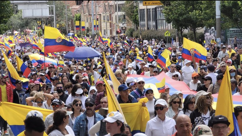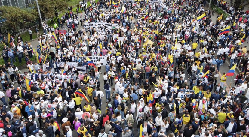 El Jefe de Servicio de @PoliciaColombia, general Carlos Rojas, reportó la participación de más de 92 mil personas en la llamada "Marcha de la Mayoría", de los cuales 30 mil salieron a las calles de Bogotá. No hay ninguna alteración de orden público. Vía @LuisErnestoC96
