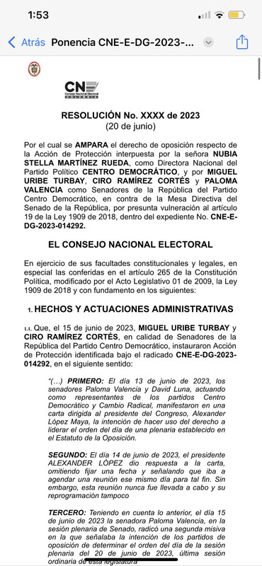 #Atención se podría hundir todo en la plenaria del Senado. El Consejo Nacional Electoral podría amparar el derecho de la oposición para que hoy ellos resuelvan el orden del día. Esta ponencia se discute a esta hora en sala extraordinaria.