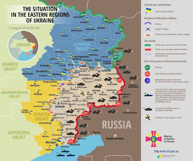 Mm hay mapas que muestran mejor la situación real del conflicto, la verdad ese mapa es famoso en la red por sus imprecisiones, y ya había comentado algo al respecto en otros foros. Es desarrollado por el Ukrainian Crisis Media Center con una cuestionable parcialidad y que solo son citados por lo general por otros medios Ucranianos y Blogs, la prensa Europea se toma hasta mas enserio el observatorio Sirio de los derechos Humanos manejado por una sola persona, que ya es mucho decir...