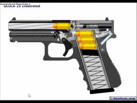 A mí me gusta ver como el percutor está bloqueado y relajado, cuando se acciona el disparador el bloqueador del percutor se alinea para que el fulminante del cartucho pueda ser detonado y al mismo tiempo el percutor es oprimido contra su resorte hasta que es liberado. Es acción simple pero el disparador debe ser un poco pesado e insensible, lo cual hace innecesario el seguro y facilitando muchísimo el tiro de reacción (por eso a mí me gusta más el revólver) además de que permite apretar con más fuerza la empuñadura (cosa que pasa, por ejemplo, cuando se usan guantes). La Córdova de percutor lanzado va a ser una señora pistola!